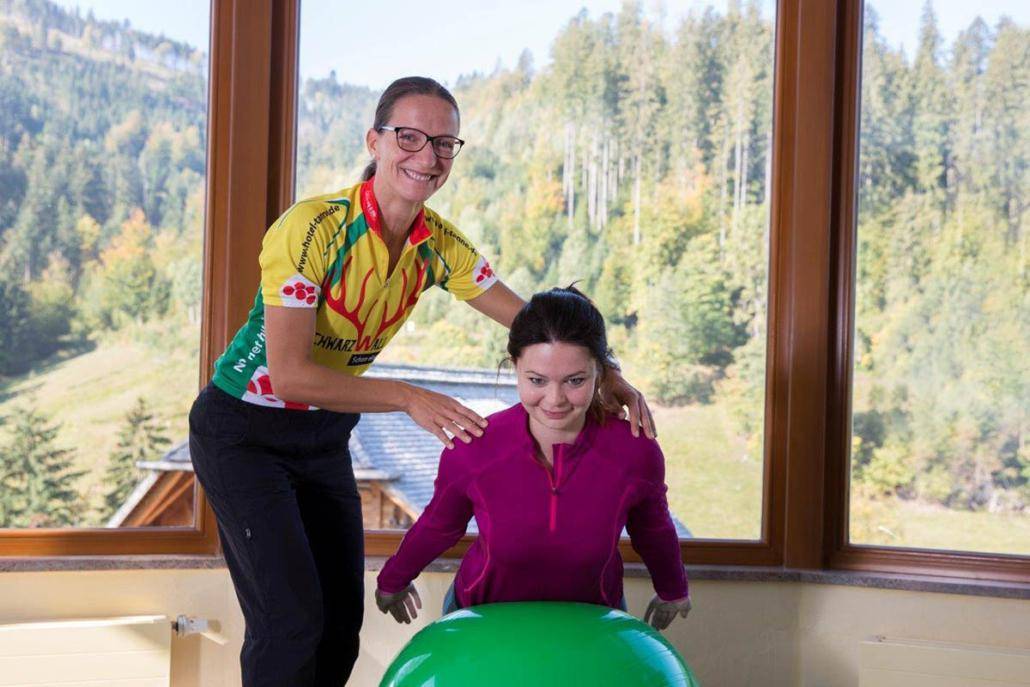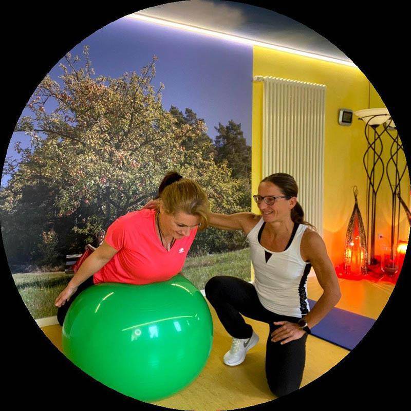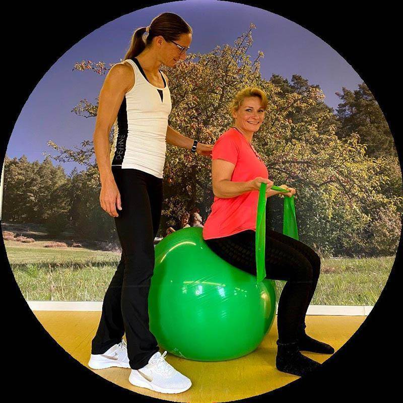Mit dem „Pezzi Ball“ (anspruchsvoll) oder leichte Wirbelsäulengymnastik.